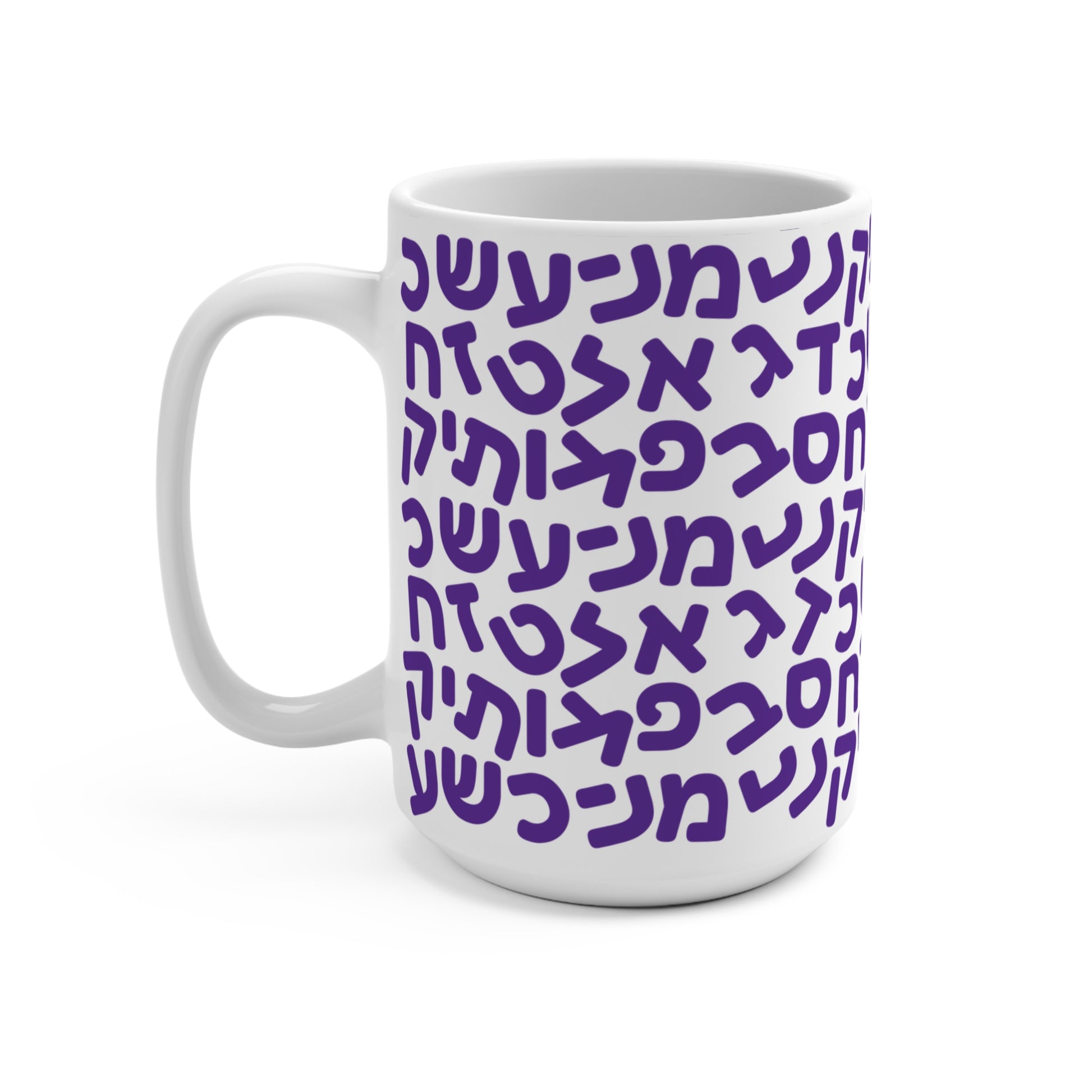 Our Aleph Bet Pattern 15oz mug showcases the full Hebrew alphabet in a clean, contemporary design that’s equal parts tradition and trend. It’s the perfect companion for your morning boker tov, late-night brainstorm, or that “just one more coffee” moment.