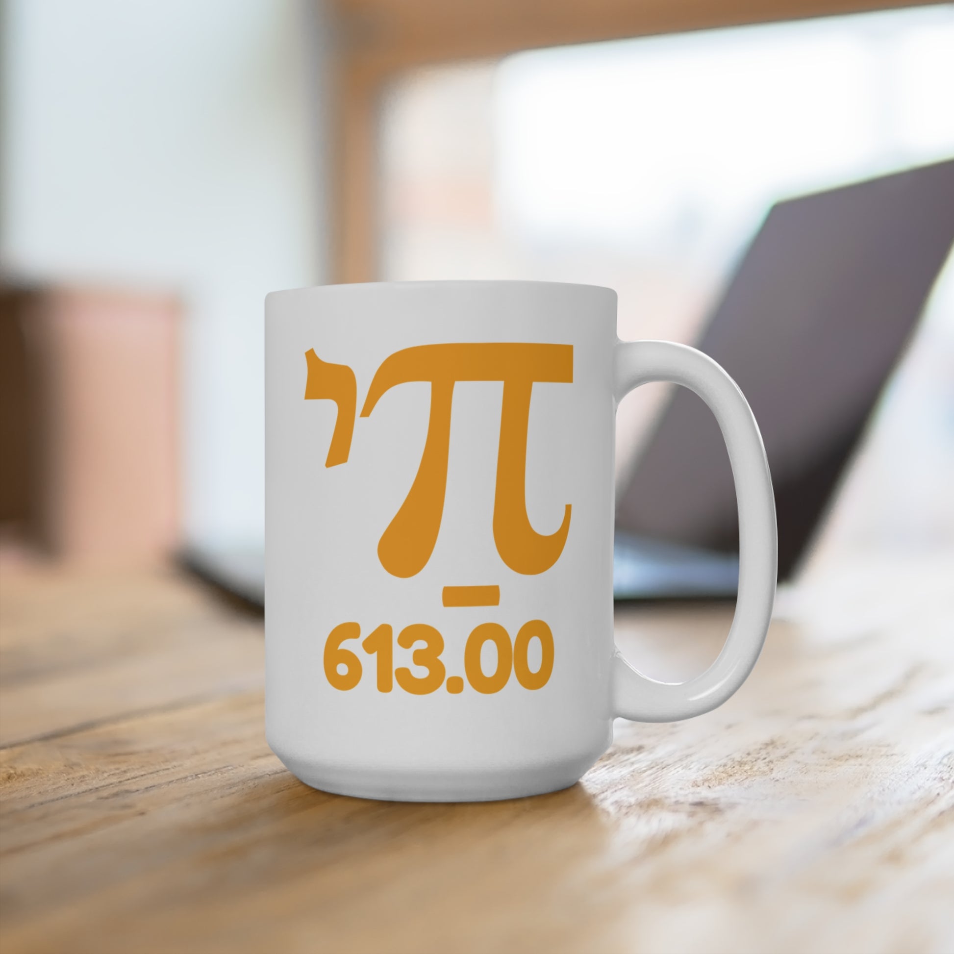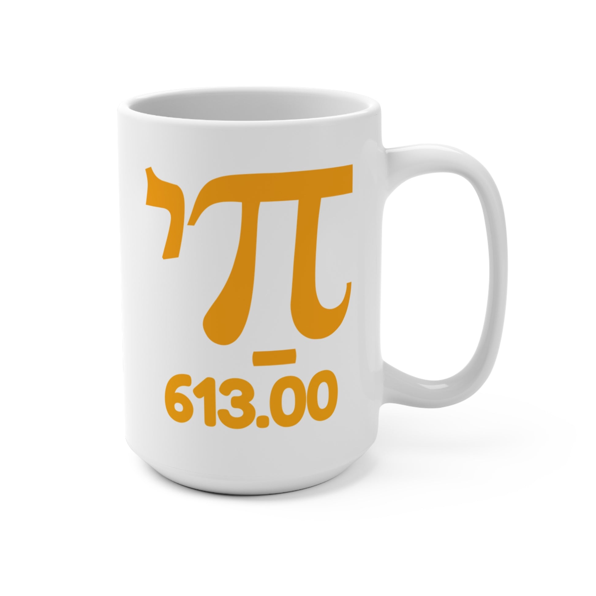 Sip with soul and a side of smarts. Our "חי 613" mug is a clever nod to Jewish tradition, blending deep meaning with a playful twist. The Hebrew word חי (Chai) — symbolizing life — is styled to resemble the π (pi) symbol, giving this design a modern, geek-chic flair. Below it sits 613, representing the total number of mitzvot (commandments) in the Torah.