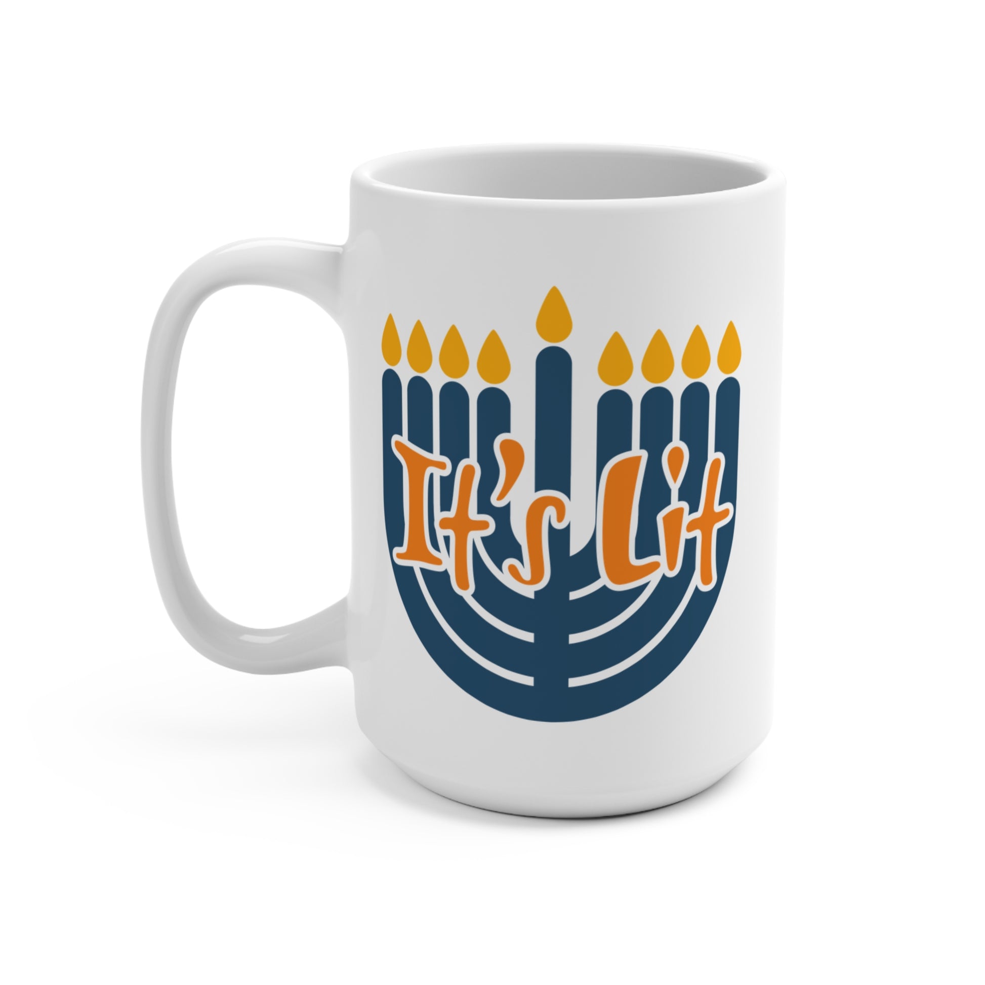 This festive mug brings Chanukah cheer to every cup, featuring a playful Chanukiah design that celebrates the festival of lights with a modern twist. Whether you’re sipping cocoa by the candles or fueling up before frying latkes, this glossy ceramic mug keeps the warmth (and the humor) flowing.