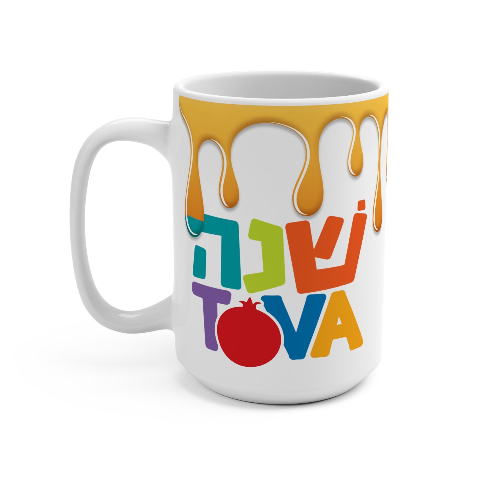 Start the New Year sweetly with our Shana Tova mug — a celebration of tradition, renewal, and cozy cups of coffee. The word Shana is beautifully written in Hebrew, while Tova features a playful twist: the “O” is a juicy pomegranate, symbolizing abundance and blessings. Honey drips from the rim of the design, bringing that golden touch of sweetness we all hope for in the year ahead.