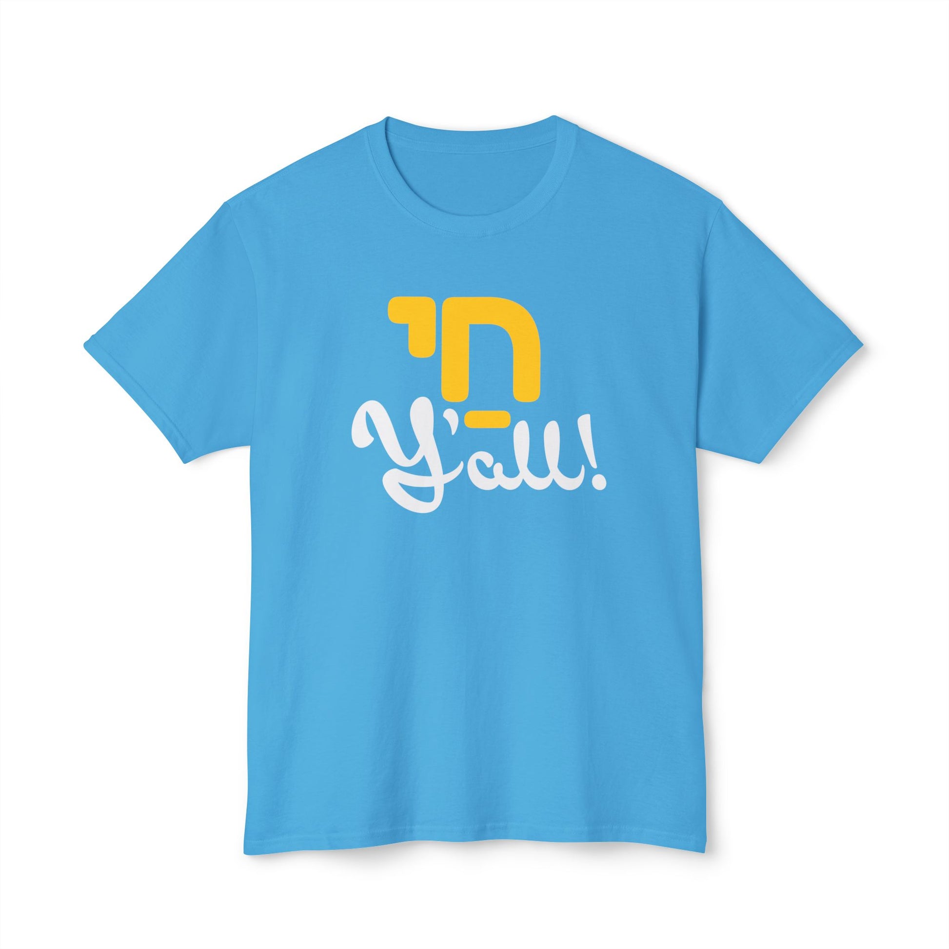 Say hello (and l’chaim) to your new favorite fusion: "חי Y’all" — where Hebrew meets Southern charm. Whether you're a Hebrew speaker with a drawl or just vibing with cross-cultural flair, this shirt says it all with two letters and a whole lot of love.