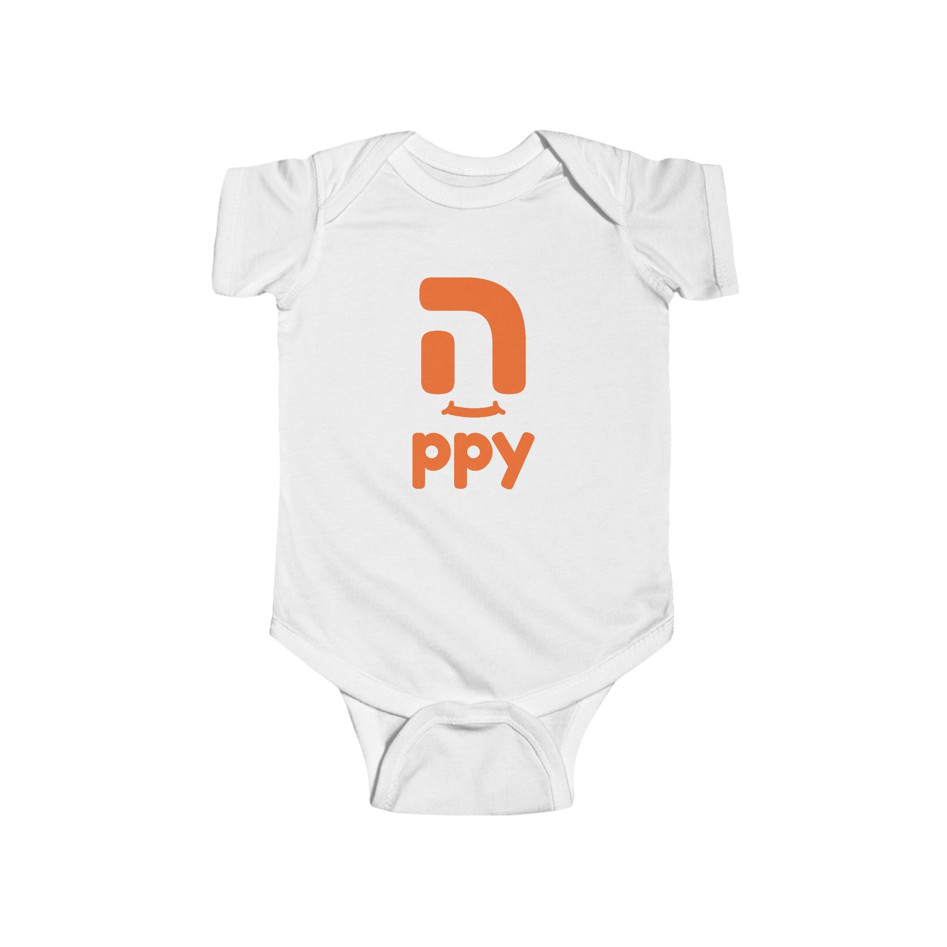 Our “Happy” baby bodysuit brings bilingual charm to your little one’s wardrobe. With the Hebrew letter ה (Hey) forming a hidden smile, followed by a clean “ppy” in English, this minimalist design says “happy” in the sweetest way — across languages and generations.