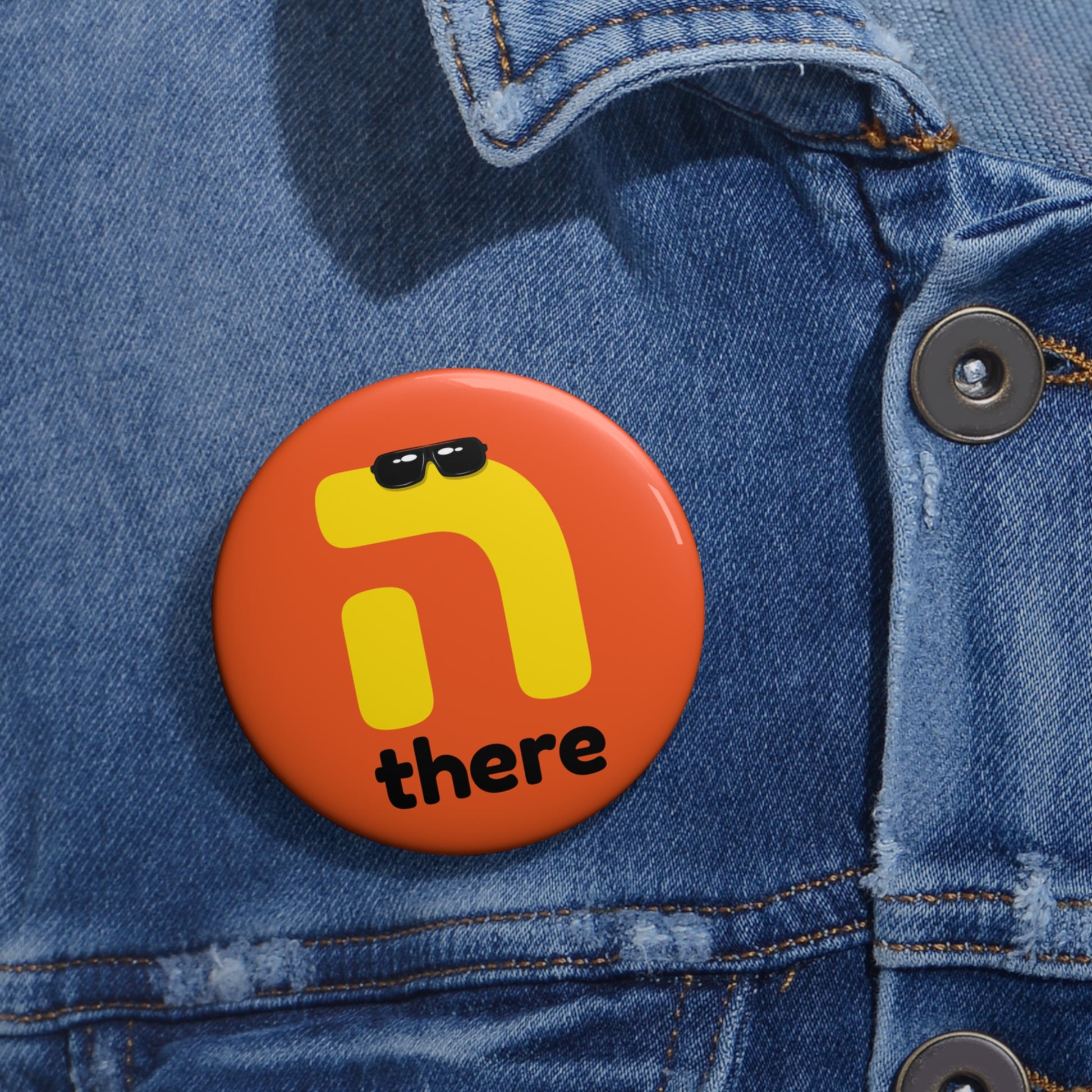 Our Hey There button features the Hebrew letter ה (Hey) rocking a pair of cool shades, with “There” printed underneath for the perfect low-key pun. It’s playful, punny, and full of chutzpah — ideal for jackets, bags, lanyards, or anywhere that needs a little attitude.