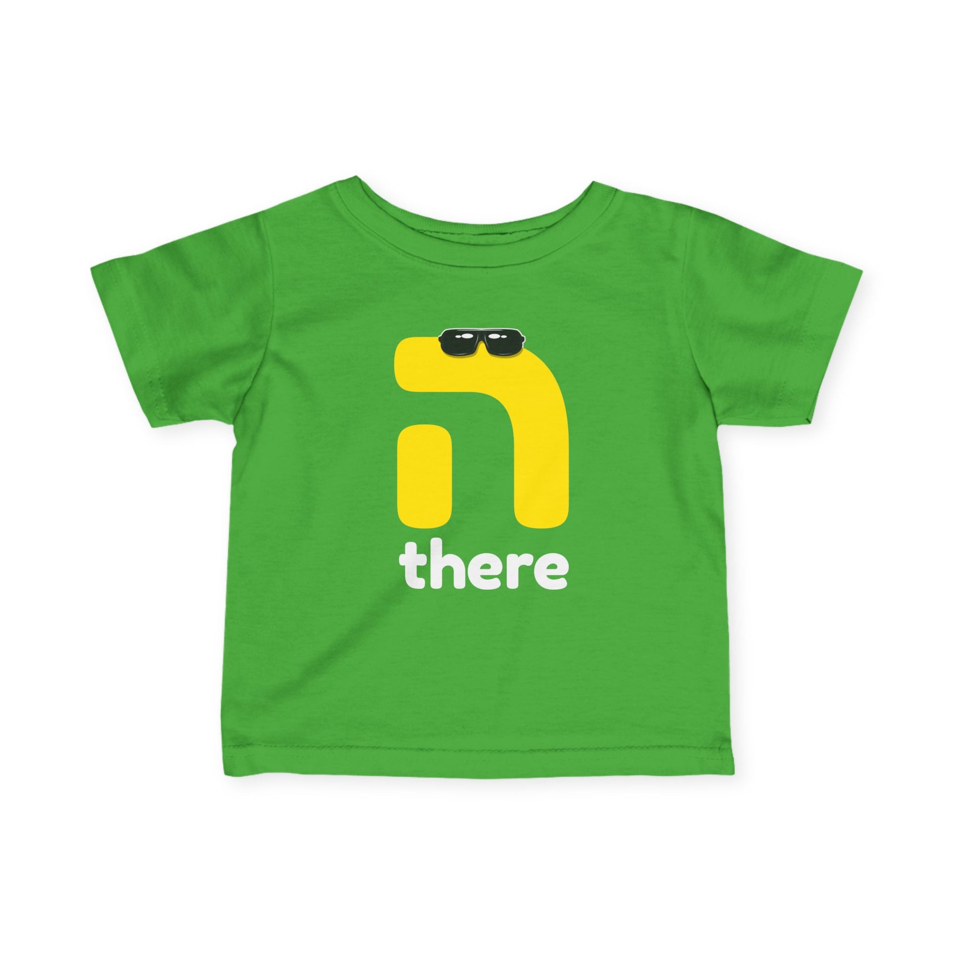 Featuring the Hebrew letter ה (Hey) rocking a pair of shades, this design brings laid-back style and a clever pun to your everyday look. With "There" stylishly printed underneath, it’s a playful nod to saying "Hey There" — with a little extra chutzpah.