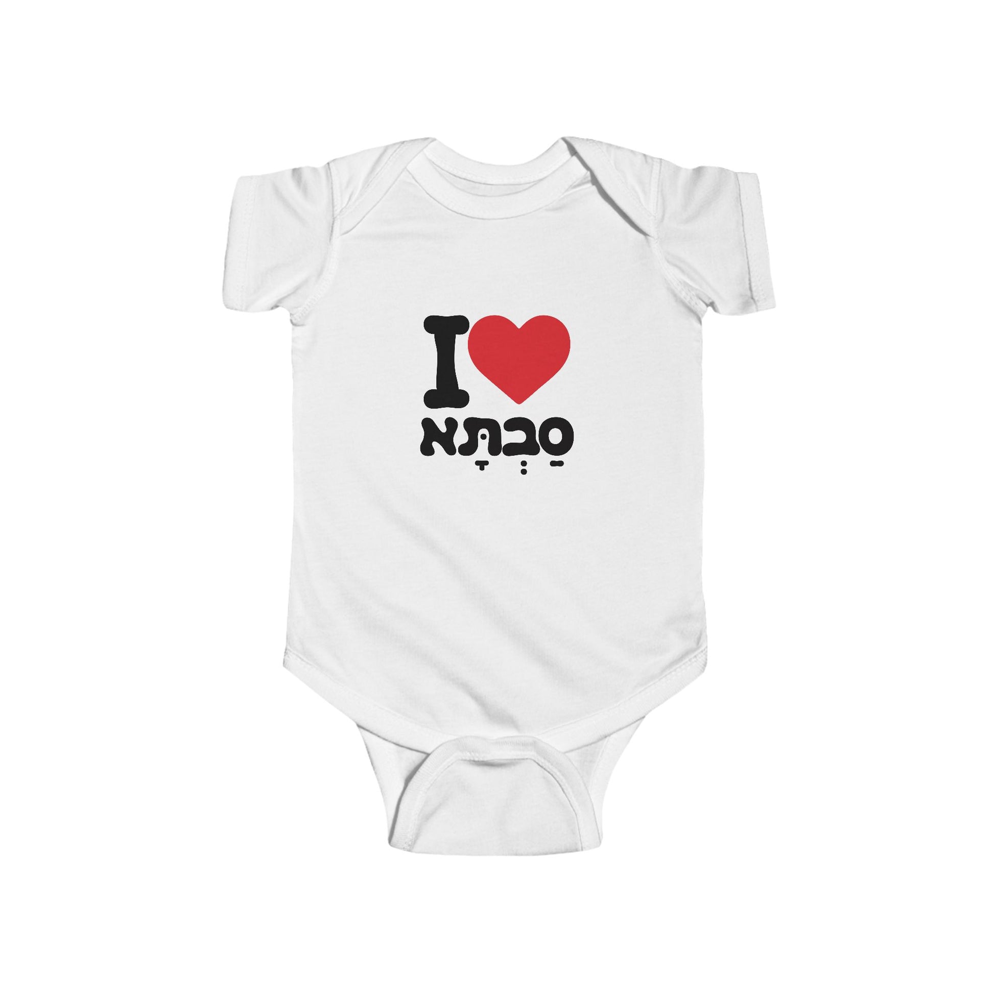 Our I ♥ Savta baby bodysuit is a heart-melting twist on the iconic “I Love NY” design, celebrating the queen of every Jewish family in the cutest way possible.