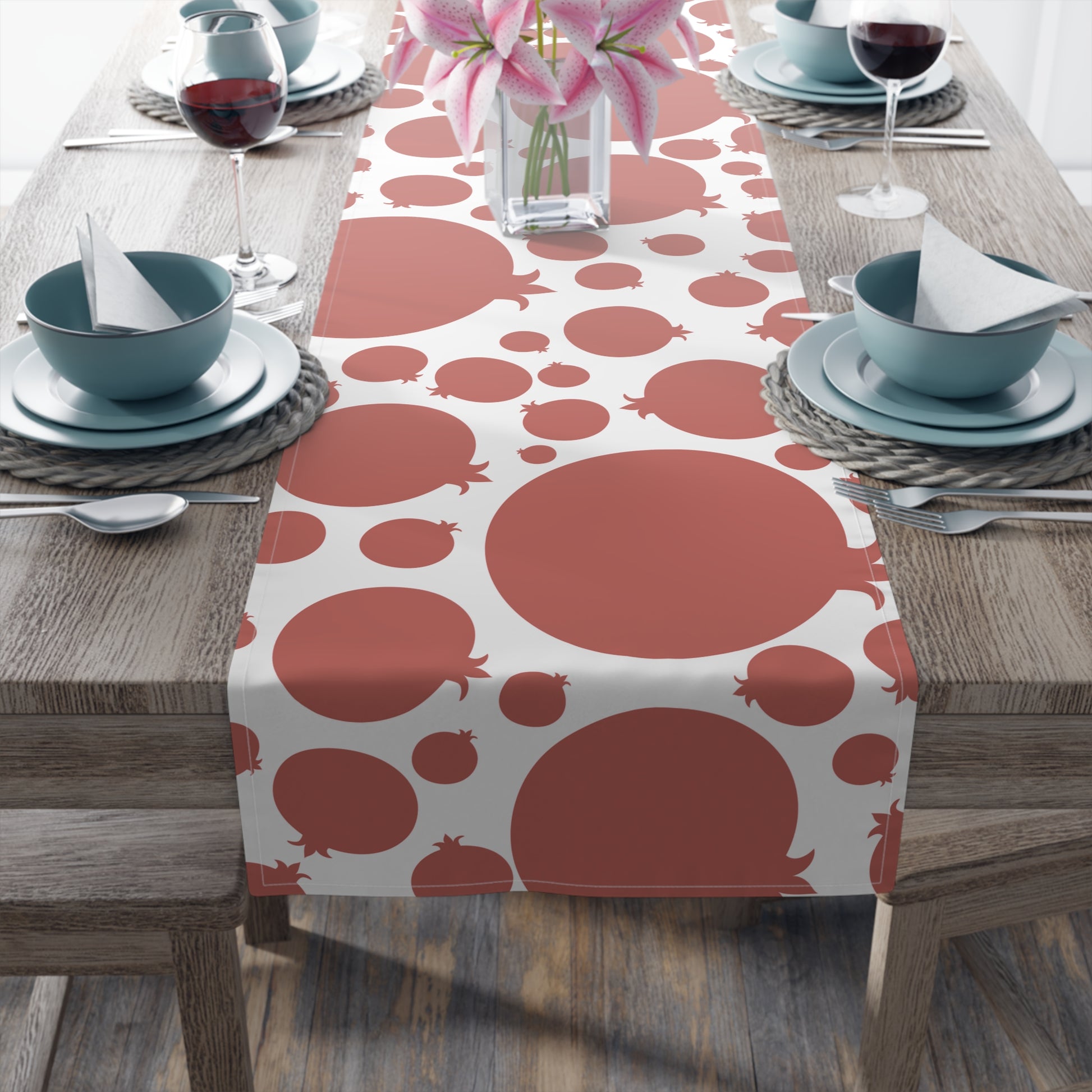 Add beauty and meaning to your holiday table with this elegant table runner, adorned with vibrant pomegranates – a timeless symbol of blessing, abundance, and sweetness. Perfect for Rosh Hashanah dinners, it sets the stage for a festive and joyful celebration with family and friends.