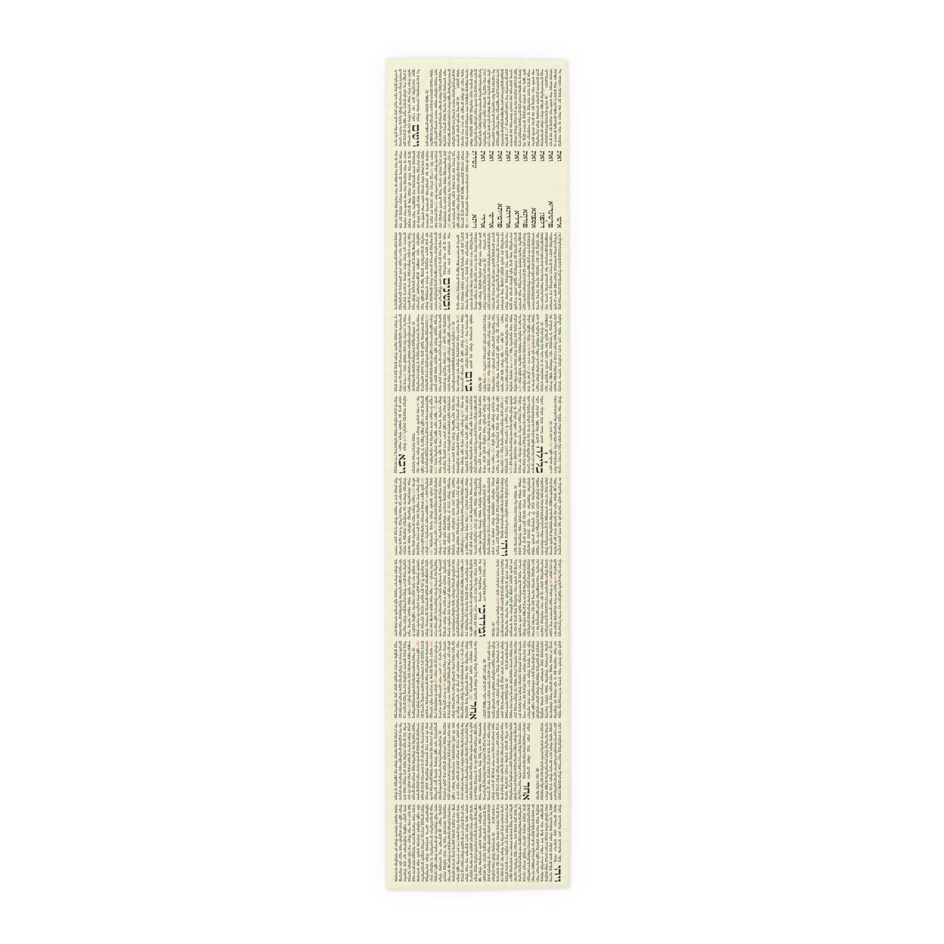 Celebrate Purim in style with this remarkable table runner featuring the entire Megillat Esther printed in Hebrew. Every word of the story is beautifully laid out across the fabric – and to make it even more special, each mention of Haman’s name is highlighted in red, just like when we stamp, cheer, and drown him out during the reading!