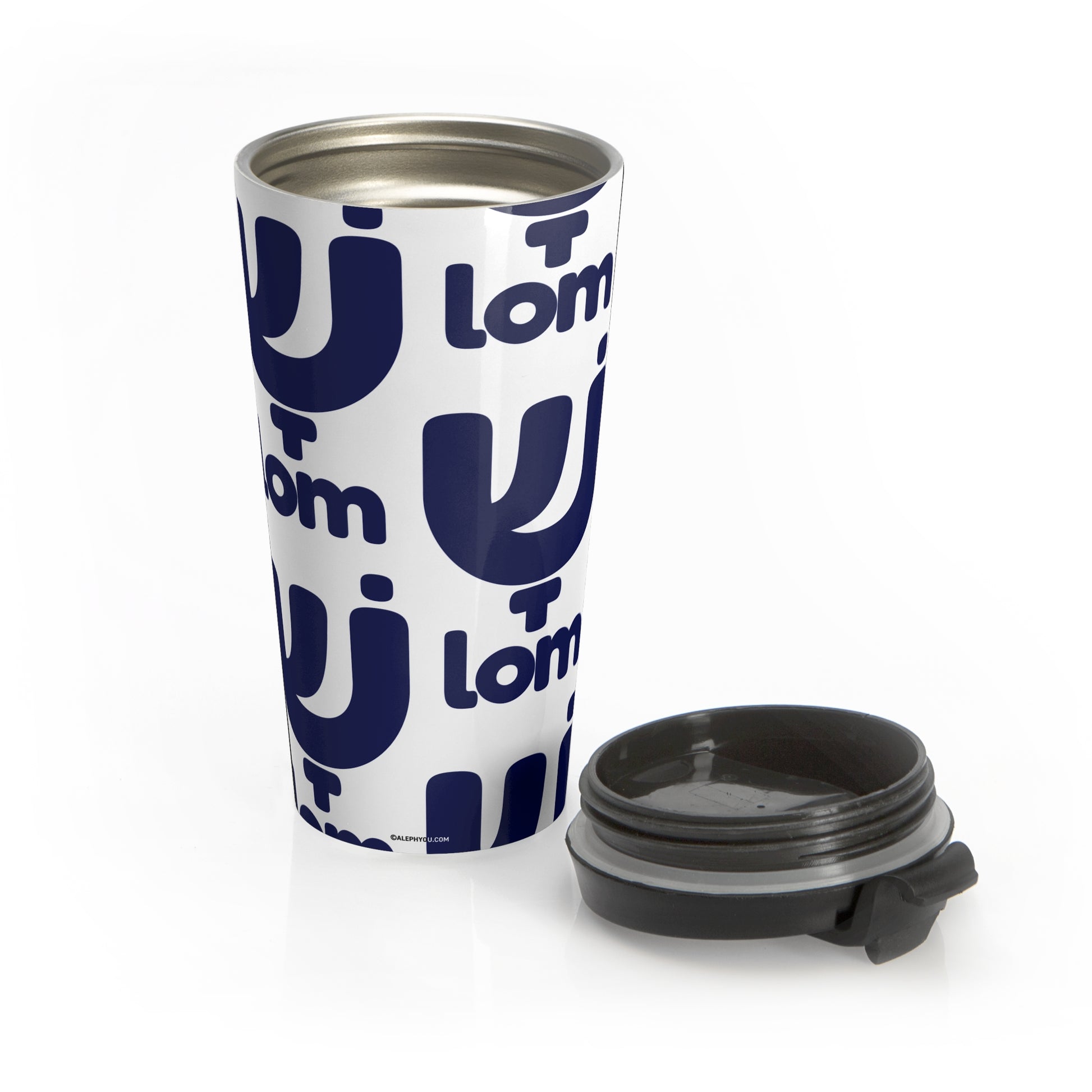 Our sleek travel mug reimagines tradition with a bold, modern twist—featuring the Hebrew letter ש (Shin) as the “Sha” in Shalom, seamlessly flowing into “lom” in clean English type. It's a minimalist statement of calm, style, and culture that travels as well as you do.
