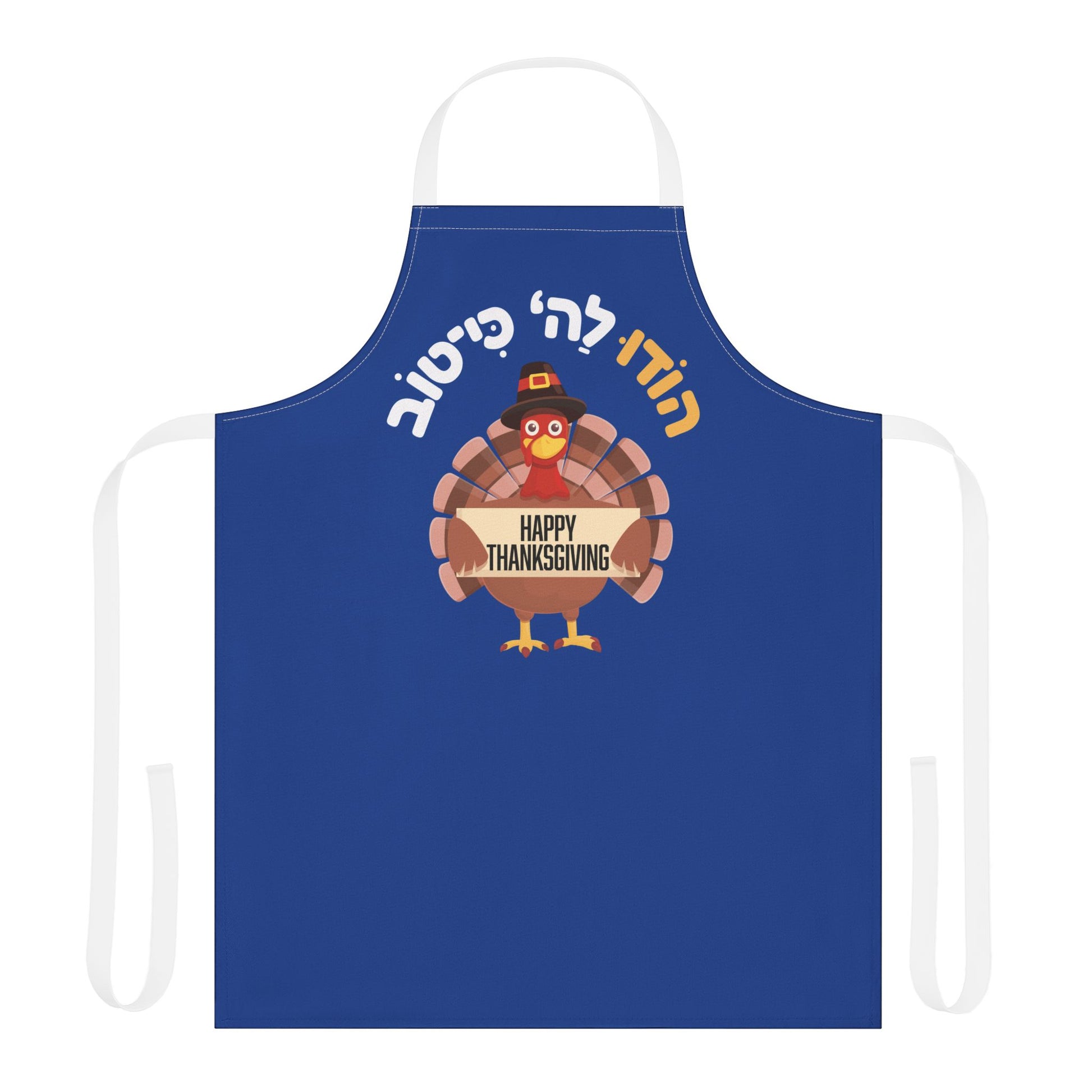 Our “הוֹדוּ לַה‘ כִּי־טוֹב / Happy Thanksgiving” apron is the perfect kitchen companion for the holiday chef who loves a clever twist. In Hebrew, Hodu means both “give thanks” and “turkey,” so you’ll be serving puns right alongside the pumpkin pie.