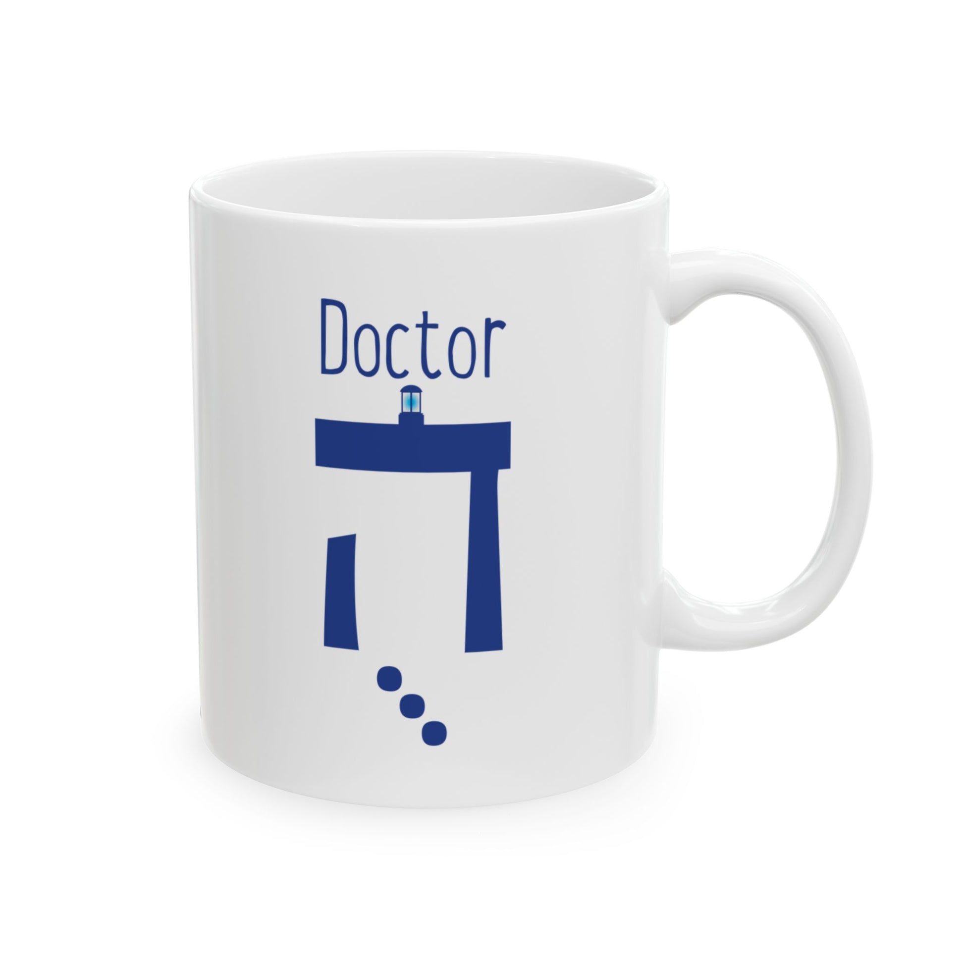Timey-wimey meets Torah vibes. This 11oz mug is a regeneration of your typical fandom merch — featuring the iconic TARDIS reimagined using the Hebrew letter Hey (ה). Whether you're a Whovian, a Hebrew pun enthusiast, or just someone who likes their sci-fi with a side of shalom, this mug is for you.